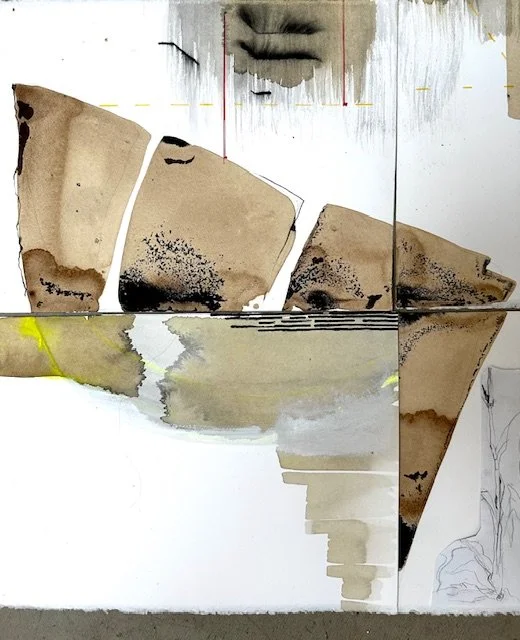 My work has always been fueled by a lifelong interest in geology—rocks, sediments, and the imprints of time. I’m drawn to the buried and revealed: the materials we build with, the fragments we dig up, the stories we unknowingly walk upon. As a child, I would bury objects in the ground, only to dig them up later, curious to see what had transformed. This sequence echoes through my creative process. It feels like an excavation of consciousness— a method for unearthing a hidden essence of self and inroads to possibilities.
